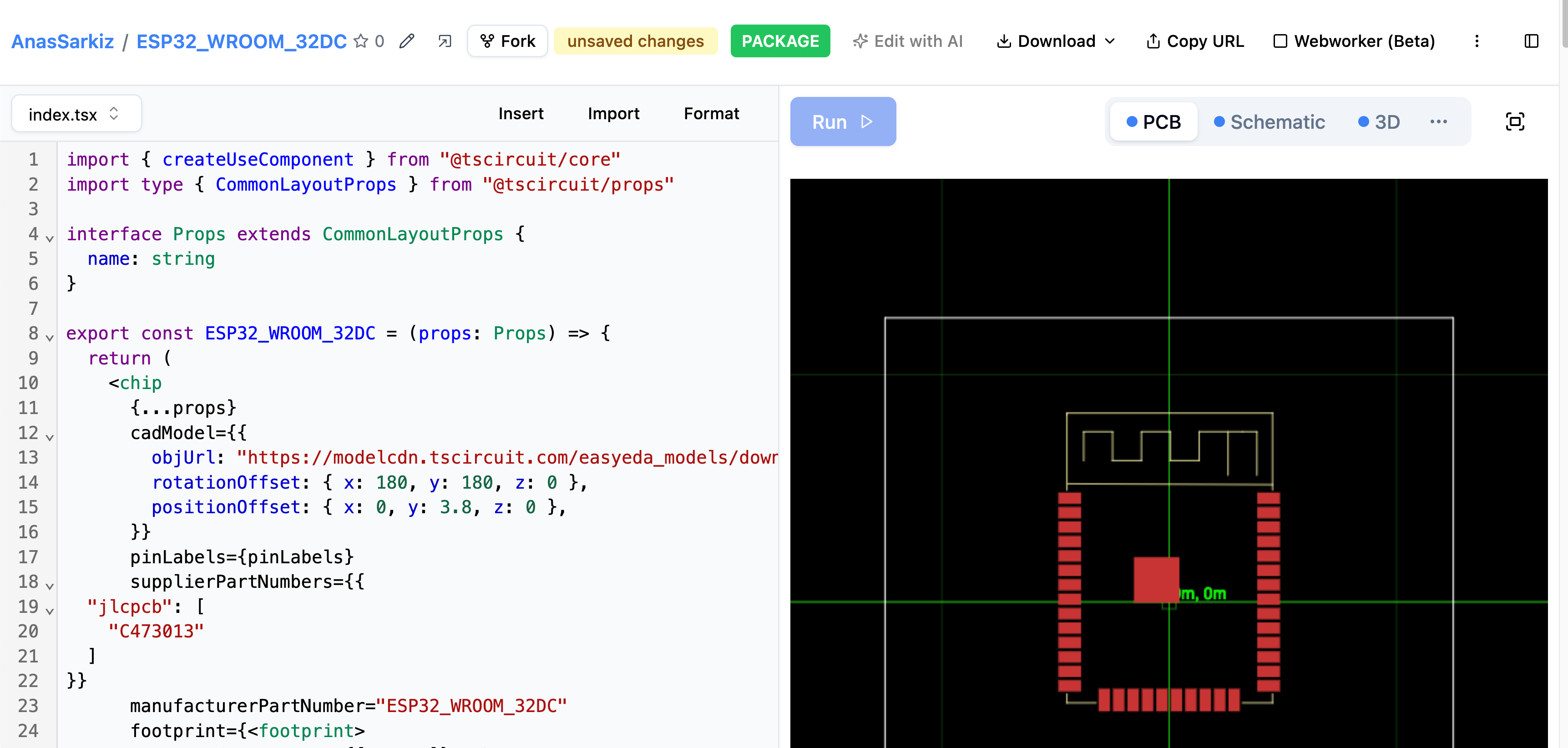 JLCPCB maintains a massive component catalog with 3D models and footprints for thousands of parts. You can import these components directly into your tscircuit projects using several methods.