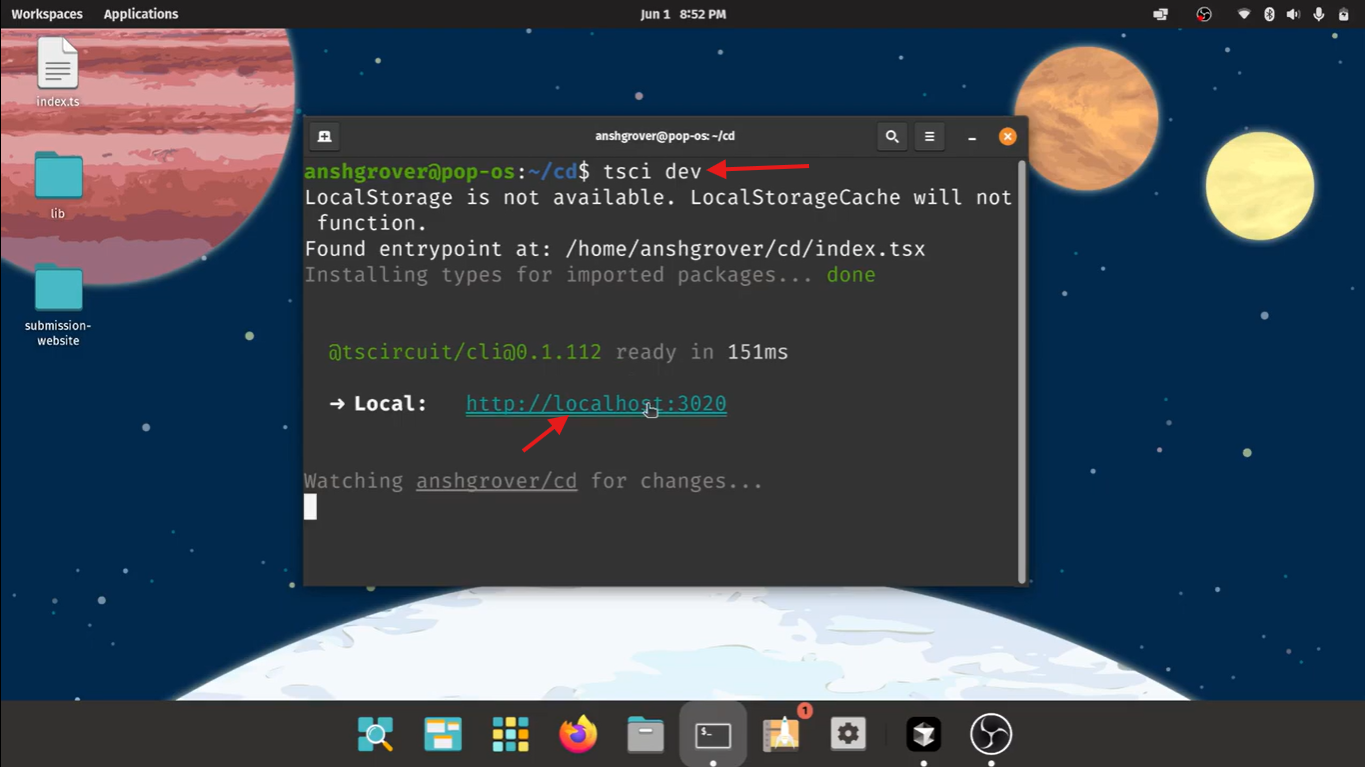 tsci dev to start the development server